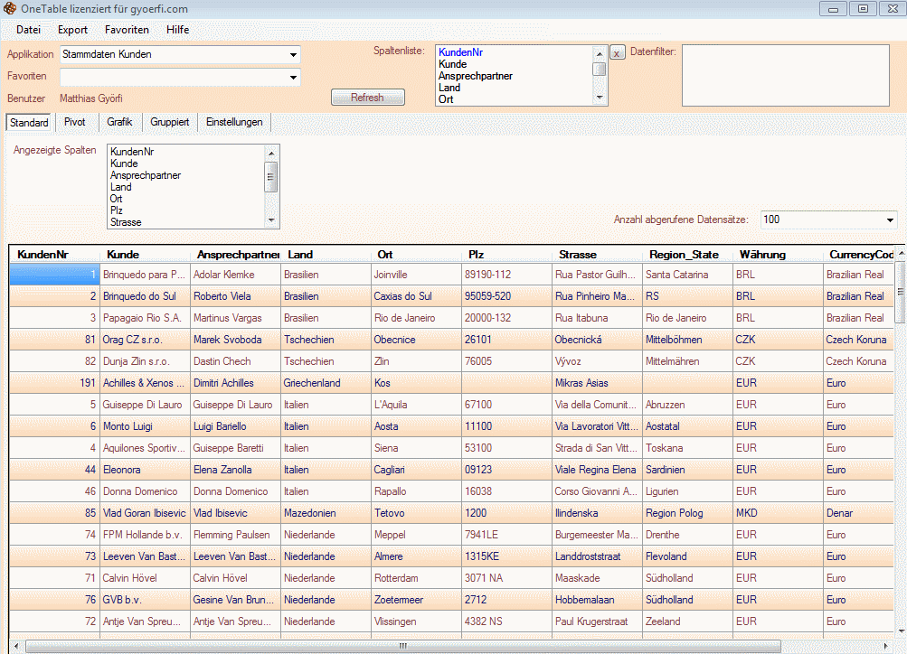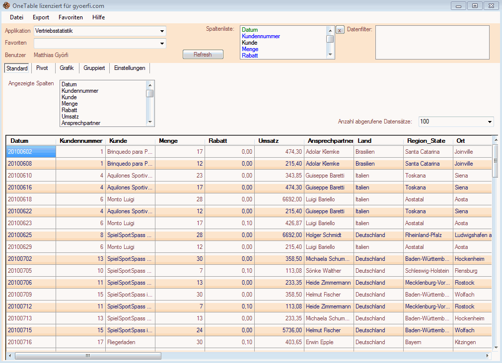 - Quick-Table ermöglicht das Auswerten beliebiger Tabellen auf dem SQL-Server, sofern die Berechtigung vorliegt