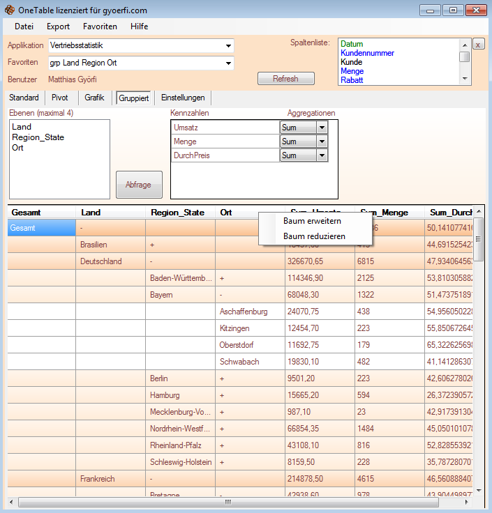 Gruppierte Abfrage mit hierarchischer Ansicht (Auf und Zuklappen via + und - )